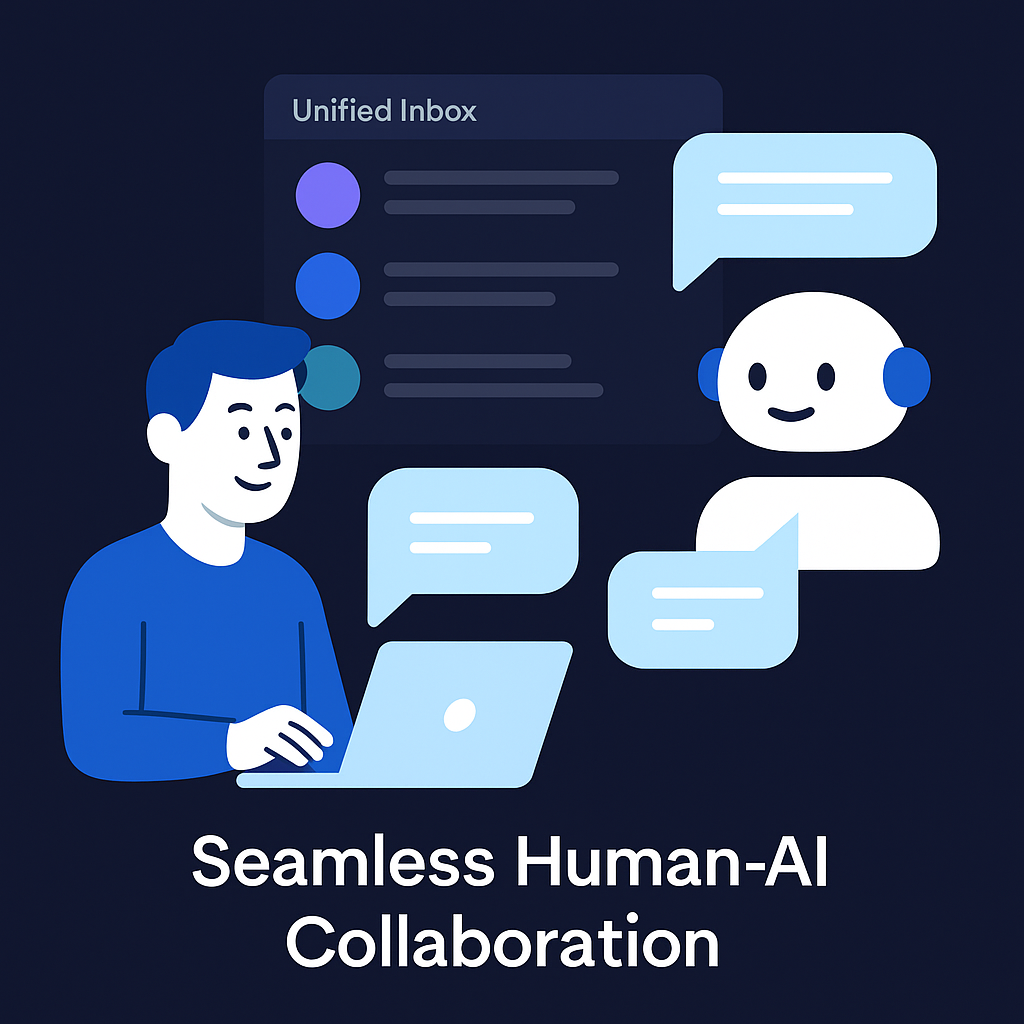 AI chat with seamless human handoff, unified inbox, and instant alerts—manage every thread in one place.
